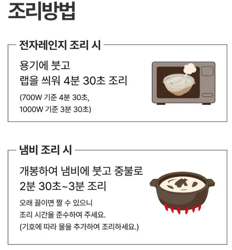 - 간편함: 봉지를 뜯어 냄비에 부어 4~5분 끓이면 끝! 전자레인지에도 데울 수 있어서 세상에서 가장 빠르게 끓여 먹는 곰탕이 아닐까 싶어요.